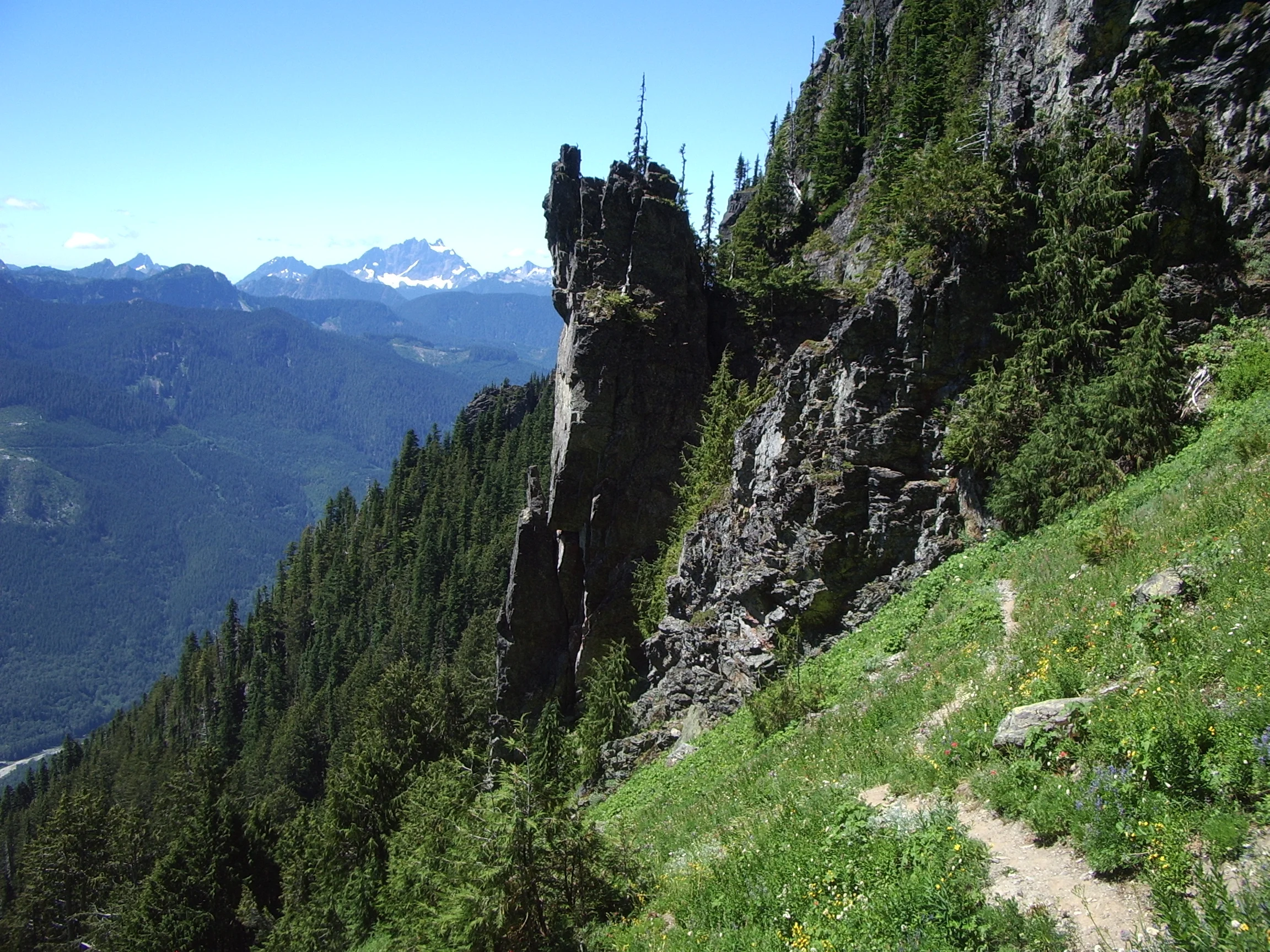 Due to lack of campsites on Pilot Ridge, the best choice is to make this loop in a clockwise direction, taking the North Fork Sauk Trail all the way up to the Pacific Crest Trail. This loop can be done as fast as you want or as a week-long adventure. Most popular is a two night trip, staying at White Pass the first night and Blue Lake the second night. Once joining the Pacific Crest Trail, turn right and head south 1.5 miles. Here you intersect an access trail leading down to the White Pass camping area equipped with plenty of sites and a backcountry toilet. If you stay here, there are a couple of great options for exploring. Either north to Red Pass (3 miles up) or along the Foam Basin Trail, which is the route climber's use for accessing the summit of Glacier Peak. Continue south on the Crest Trail down to Indian Pass where you find a number of campsites. At this point the Crest Trail climbs to a ridge and you pass a junction with the Little Wenatchee Trail then Dishpan Gap. This is about the halfway point of the loop and has a few great campsites in the area. Take the trail marked Blue Lakes, turn right and arrive at another junction, now with the Blue Lakes High Route. If you choose to go up then prepare for a doable, unmaintained climbers route going up and over a ridge to Blue Lake. Skipping the high route, the main path heads down to the Bald Eagle Trail and turns right onto a trail marked Blue Lakes. Find Little Blue Lake first, but great campsites and a backcountry toilet make the bigger Blue Lake a great spot to stay. Make sure to get water at the lake before the short climb to a junction with Johnson Mountain Trail. Continue, now on Pilot Ridge, the path stays high and in the open. Once near the end of the ridge, it drops you into the trees and then, possibly unnecessarily, brings you back up to one last small meadow. Then you drop, completely in the forest, to the North Fork Sauk River. Cross on an old tree and rejoin your trail, turning left towards your car two miles away.