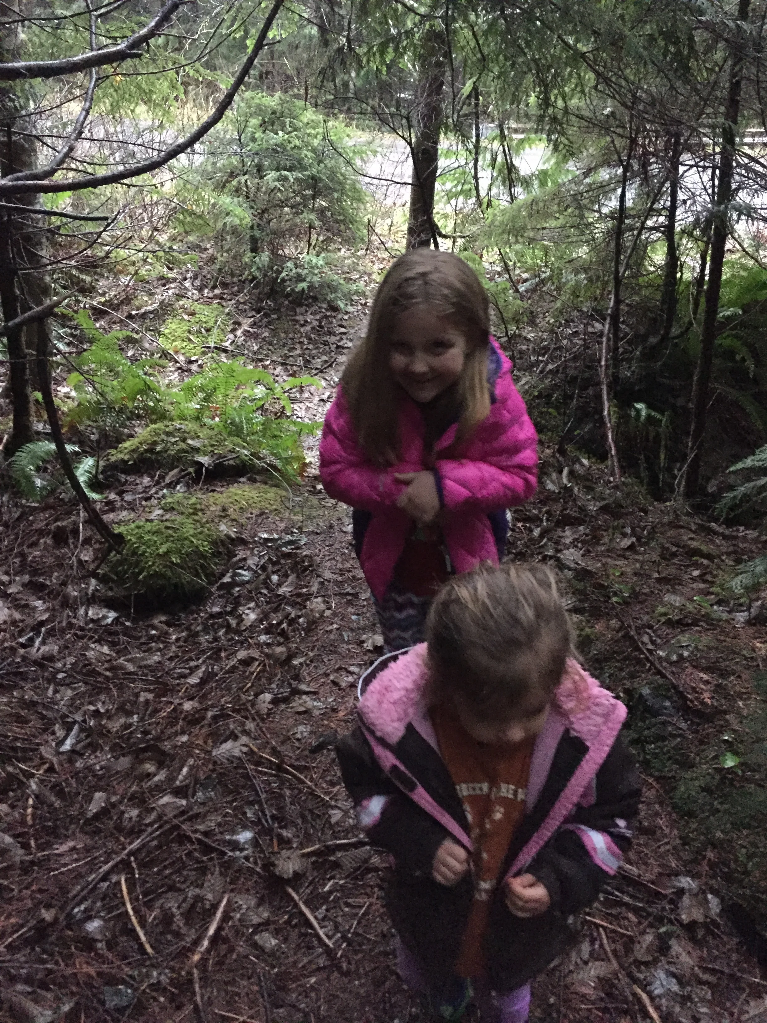 After my oldest daughters basketball practice, I took the girls up the Mountain Loop Highway to find snow! I had actually told Friends For Public Use, that I would check out the Mt. Pilchuck Road, looking for integrity issues or possible trees down.